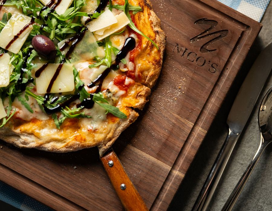 | (Rajčica San Marzano / Provolone Affumicato / gorgonzola dolce / rikola / Grana Padano / mozzarella / maslinovo ulje / masline) | |