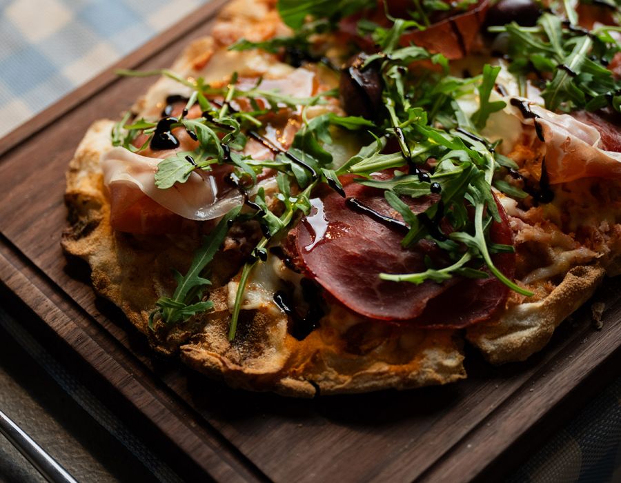 | (Rajčica San Marzano / mozzarella / bresaola / rikola / Prosciutto Crudo / maslinovo ulje / masline) | |