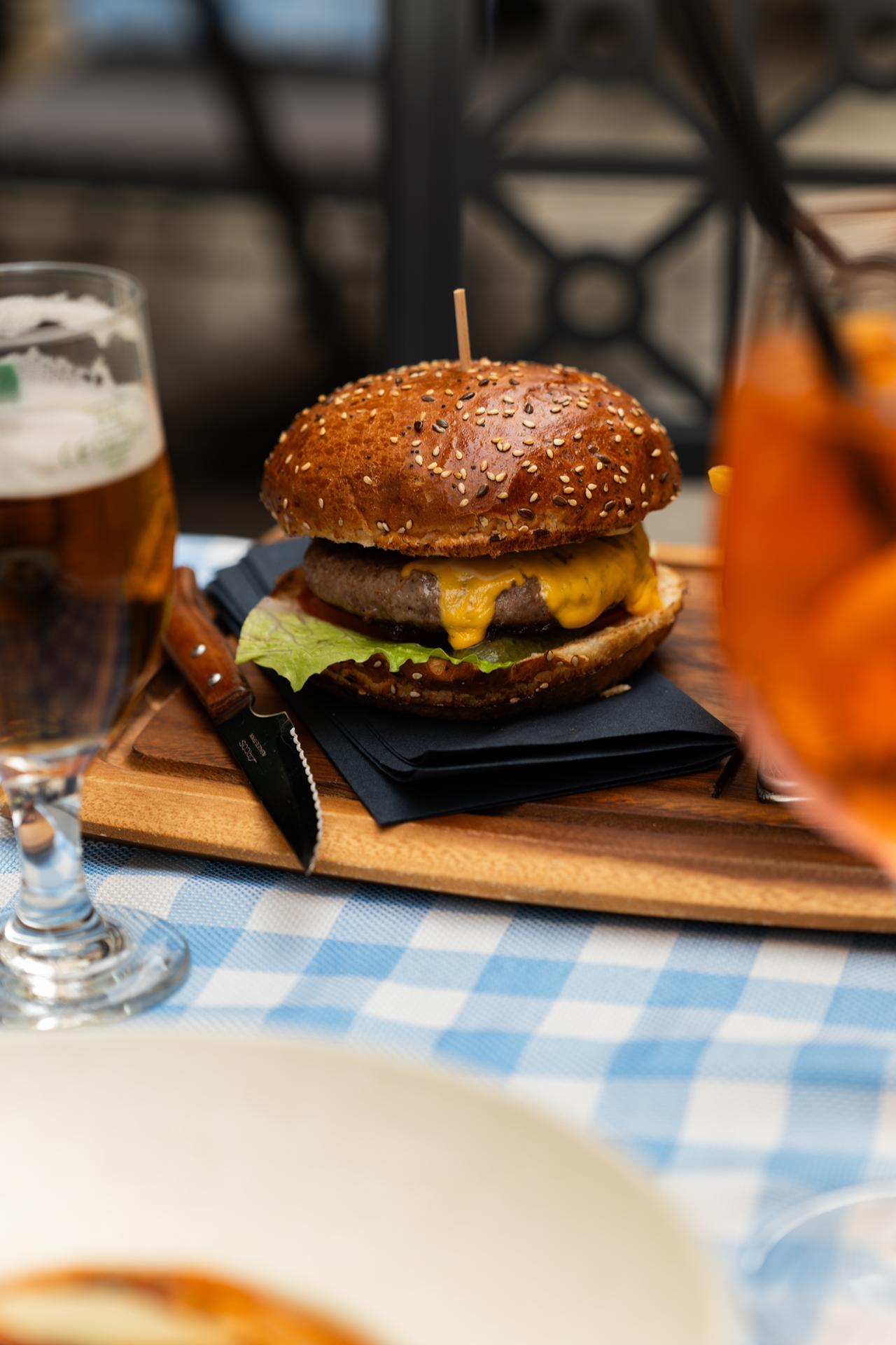 | (Junetina 200 g ∙ brioche pecivo ∙ slanina ∙ cheddar sir ∙ bbq majoneza ∙ salata ∙ rajčica ∙ kiseli krastavci ∙ krumpirići) |