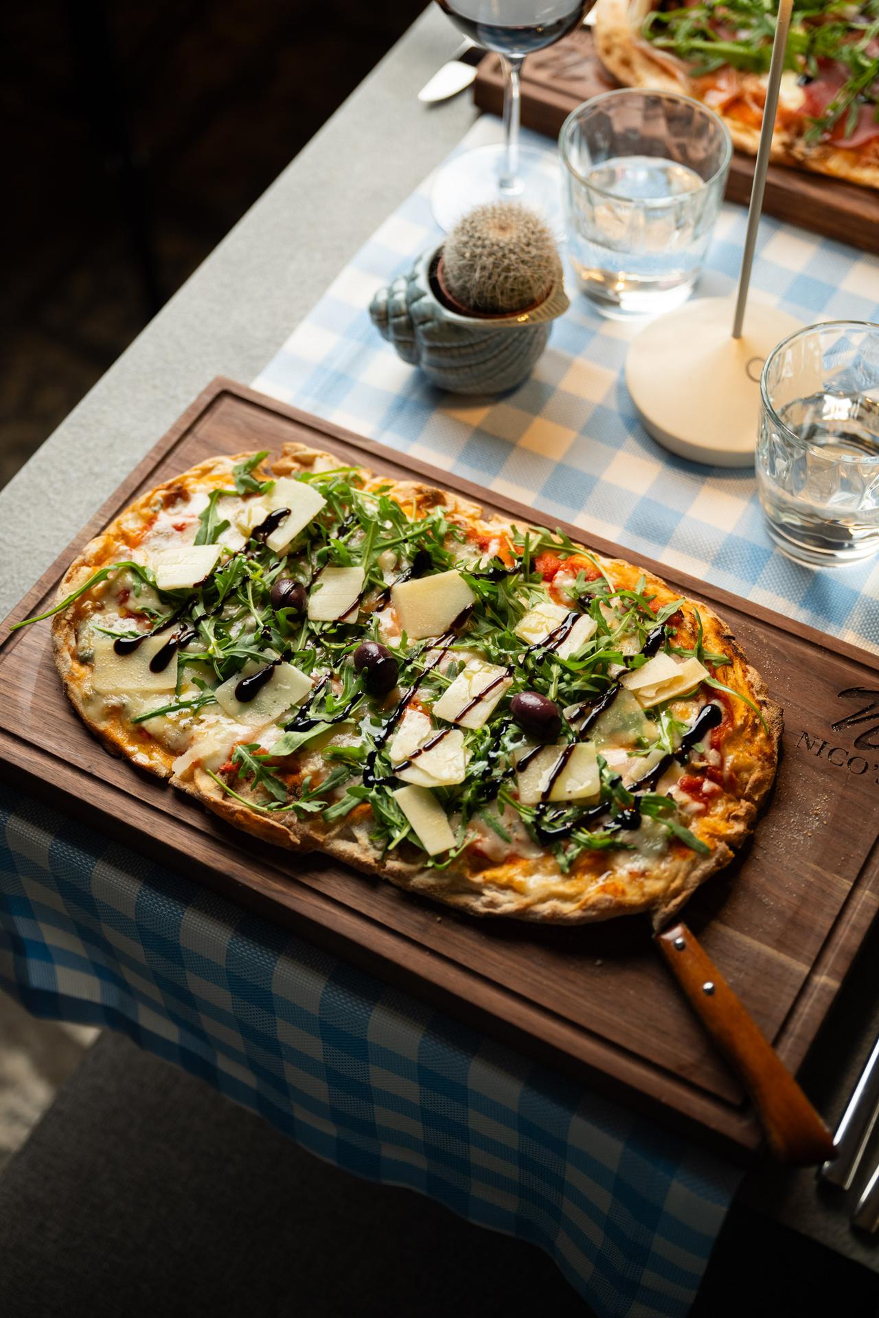 | (Rajčica San Marzano / Provolone Affumicato / gorgonzola dolce / rikola / Grana Padano / mozzarella / maslinovo ulje / masline) | |