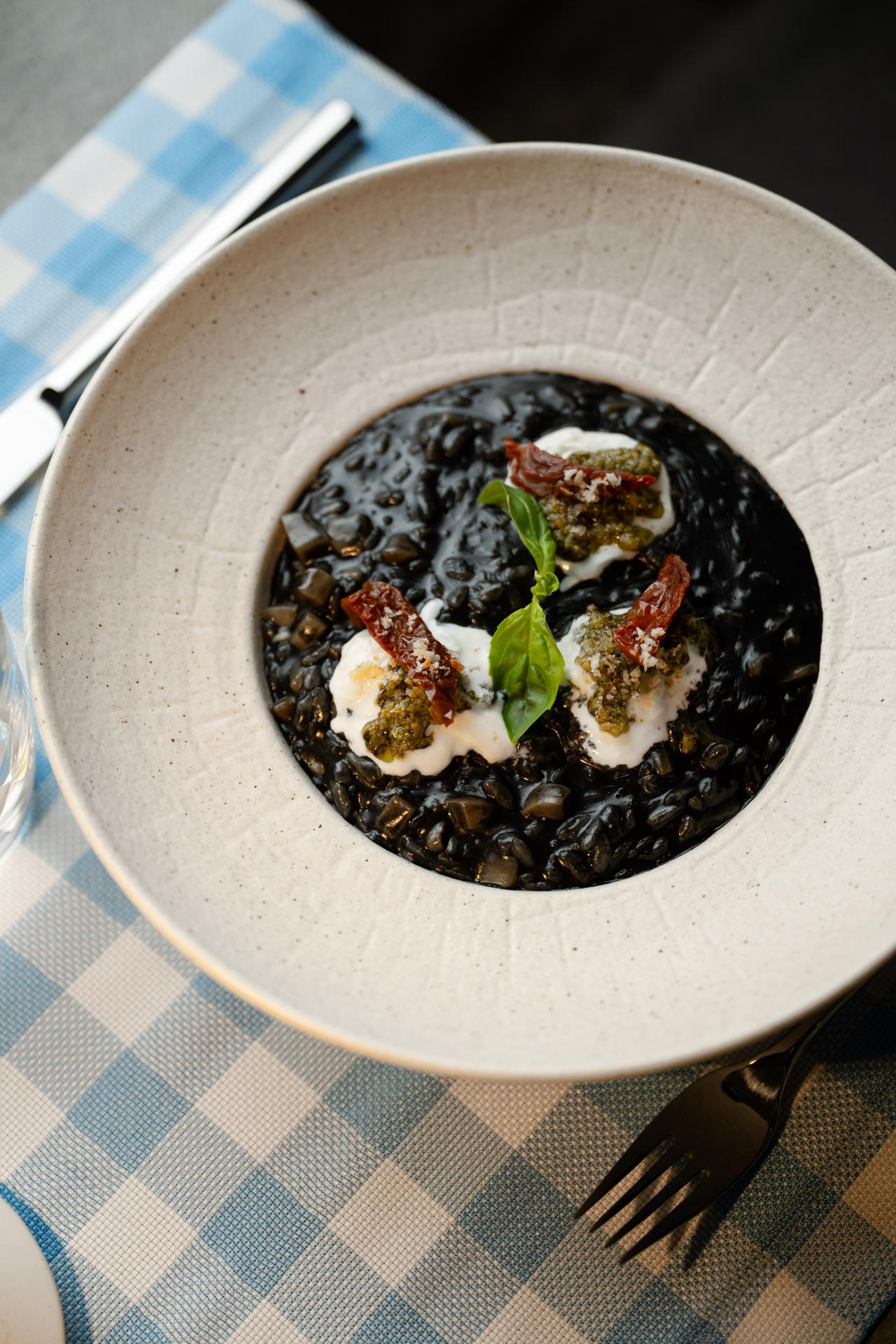 | (Sipa / crnilo sipe / straciatella / pesto / ulje peršin) |